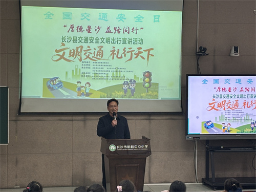 今年全国交通安全日的主题是“文明交通 礼行天下”。“行人要走人行横道;过马路时要使用过街设施(如人行天桥,地下通道)、通行要遵守信号灯和一站,二看,三通过这个过马路123原则!”活动现场,长沙县交警大队星沙中队杨煌警官通过精心准备的多媒体课件,结合小学生日常出行特点,用通俗易懂的语言讲解了交通信号、标志标线的含义,步行、骑自行车以及乘车时的安全注意事项。特别针对小学生群体中常见的追逐打闹、横穿马路、在马路上玩耍等危险行为进行了重点警示。