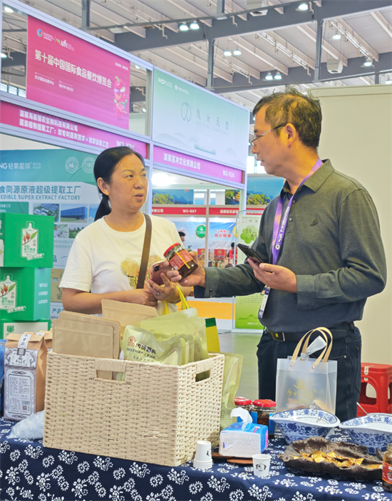 9月19日,第十届中国国际食品餐饮博览会在长沙盛大开幕。本届展会以 “促进消费 创新发展” 为主题,吸引了超过 1400 家企业参展,展览总面积达 8.1 万平方米,来自国内外的上万种商品齐聚一堂,共同呈现多元饮食文化风采。在这场食品餐饮行业的盛会上,湖南廖派食品有限公司携其独具特色的产品 —— 非遗廖派莲香传统牛肉干和高蛋白食叶草牛肉酱惊艳亮相,成为展会焦点之一。