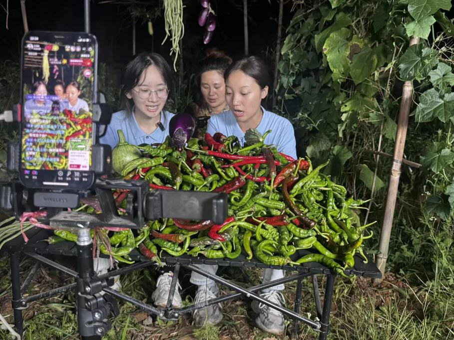 促进团在调研中发现老渡村辣椒品质优良,且有村干部带领开展电商直播。于是,团队联合村支两委开展“同心助力农村新发展”农产品直播活动。新闻专业的大学生主播们在直播中展示辣椒品相,讲述种植故事与绿色农业技术,近3小时突破千单。此次直播是“干部牵头、学生参与、电商赋能”模式的实践,成员们充分运用专业知识为农产品销售拓宽了渠道。