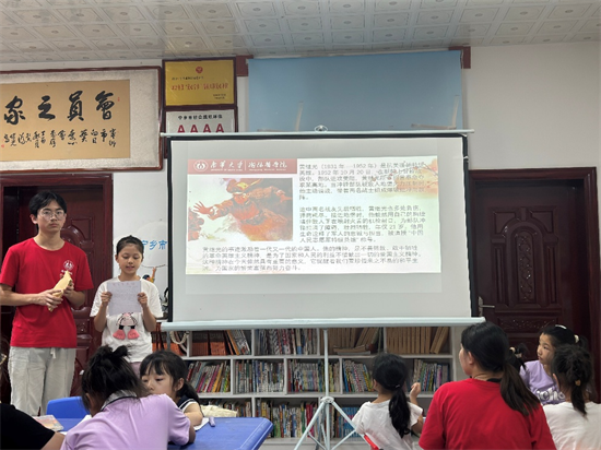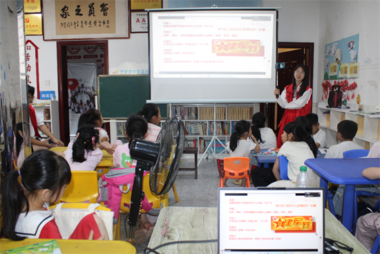 中国新报讯(文/单茂杰 陈紫凌 图/雷博中)为祭奠英烈、缅怀先辈,7月4日至7月31日,南华大学“夏荷映初心,白袍医路行”志愿服务队在宁乡巷子口镇,通过线下课堂与云课堂相结合的方式,为孩子们举办了多场形式新颖的爱国主义课堂。