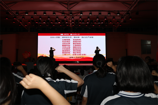 随后,全体高三学子在主持人张子涵、鲁旭彬的带领下庄严宣誓,齐诵《高三启航誓词》:“以我青春,誓战高考;壮志凌云,豪情冲霄!”铿锵有力的誓言响彻全场,表达了学生们迎难而上、志在必得的决心。宣誓结束时,全体师生与家长代表齐击掌三声,寓意“志·行·成”的坚定信念与行动承诺。
