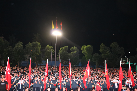在“巅峰宣言”环节,高三各班依次喊出本班备战高考的口号,气势磅礴、斗志昂扬。随后,全体师生与英才班学生齐唱改编版《追梦赤子心》,歌词中融入了古丈一中的校训精神,歌声激昂,响彻夜空,将整个仪式推向高潮。