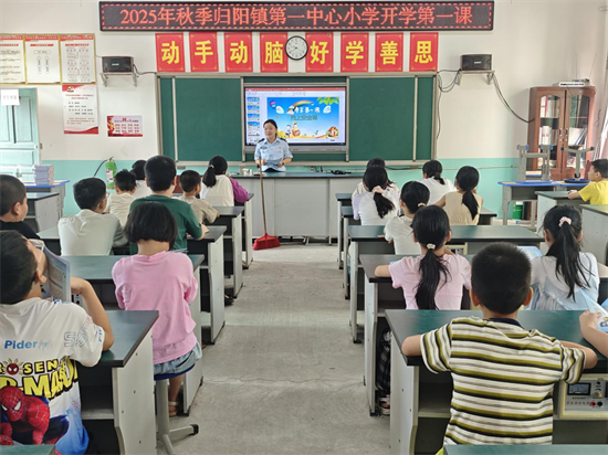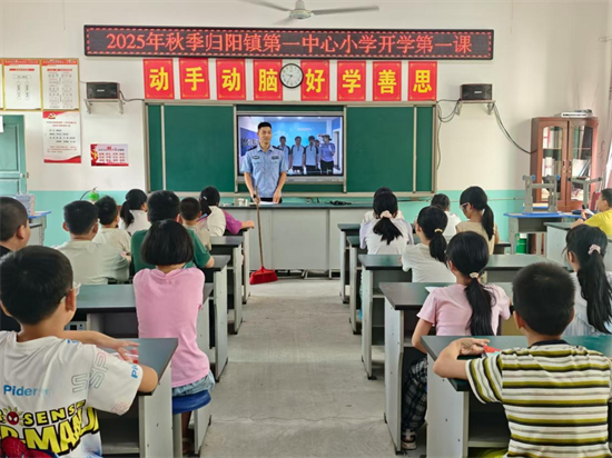中国新报讯(通讯员 段臻)近日,祁东县归阳镇平安法治和应急管理办联合派出所、司法所、法庭等多部门,走进第一中心小学和中心学校,开展2025年秋季“开学第一课”主题教育活动,为学生们带来了一场内容丰富的安全法治教育课。