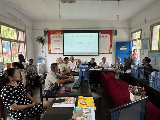 当天下午,翁牙小学教师集体办公室里气氛热烈而祥和,19名退休教师及在职教师欢聚一堂,以集中学习观看回信内容及新闻联播,并召开座谈会的形式共度教师节。