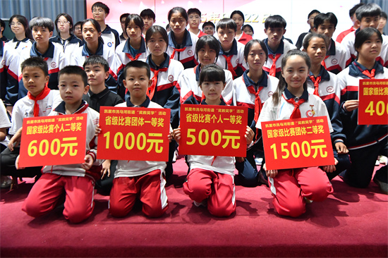 学生优秀运动员也是表彰奖励的对象,今年代表黔东南州参加第四届中国青少年足球联赛贵州赛区(女子初中年龄段U14组)斩获亚军的该市第一初级中学的王真璐腼腆地说:“今天,我们获得这个奖很开心,今后将继续加油!”