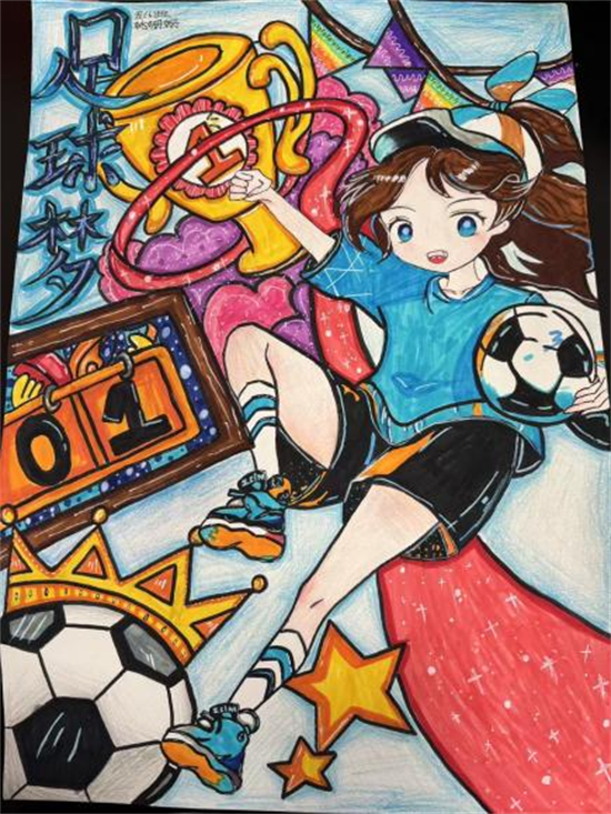 比赛自启动以来,得到各班同学的积极响应。大家踊跃参与,围绕足球主题展开创作,充分发挥想象力与创造力。创作过程中,同学们运用斑斓的色彩与流畅的线条,将绿茵场上的拼搏激情、比赛中的精彩瞬间,以及对足球运动的热爱与梦想,一一呈现在画纸上。一幅幅作品充满童趣与活力,不仅展现出学生扎实的绘画基本功,也传递出他们对足球运动的真挚情感。