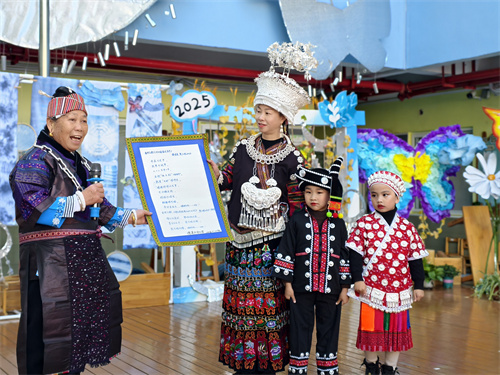 据凯里市第九幼儿园园长龙晓菊介绍,自2018年起,该园便积极邀请有专业特长的家长担任“家长助教”,其中,不乏苗歌教学、侗族大歌、芦笙演奏、银饰刺绣等领域的民间老艺人。通过让家长参与课堂教学和大型活动展示,不仅实现了家校共育共建,更让民族文化深深植根于孩子们心中。