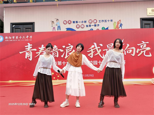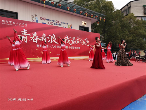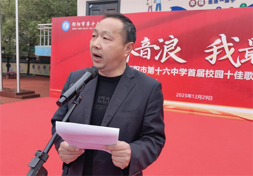 中国新报讯(通讯员 张利)12月29日下午,衡阳市第十六中学首届 “青春音浪,我最响亮” 校园十佳歌手大赛激情启幕。大赛经全校动员、各班推选、百余人初赛及多轮竞演迎来终极之战。何文胜校长致辞,以“梦想是氧气”“行动即意义”“磨砺是成长” 三句新年赠言与全校师生共勉。
