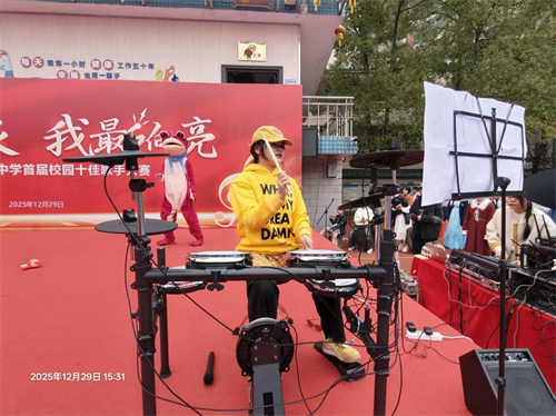教师献唱的《我爱你中国》悠扬响起,瞬间点燃全场师生热情。舞台上,选手们全情投入,用动人歌声与真挚情感诠释着一首首曲目,展现出精湛技艺与独特魅力。《年轮》旋律婉转,唱出时光的流转韵味;《梦幻诛仙》《天下》带着大家领略仙侠与武侠的奇妙世界;《同手同脚》道尽兄弟之间的深厚情谊,令人为之动容;《绿色》、《我的未来式》等流行歌曲则让青春活力肆意绽放。