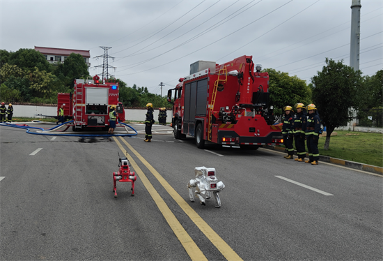 多模态消防机器狗首次亮相灭火救援实战演练。