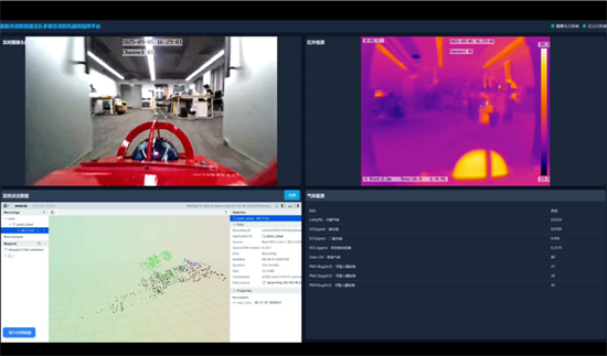 通过激光雷达扫描周围环境,多模态消防机器狗能在浓烟中寻找被困人员的生命迹象,为进楼救援提供决策信息。