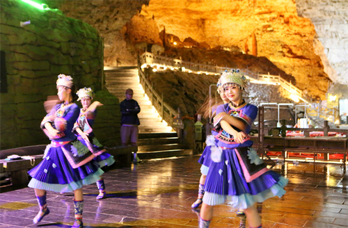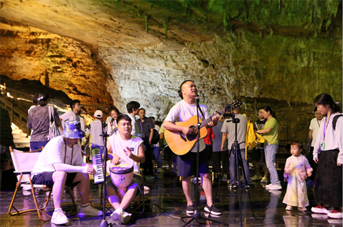 “洞内凉爽如春,奇妙的光影、美妙的音乐与自然美景完美的融合在一起。”来自广东的杨先生感叹道:“在亿万年的溶洞中聆听音乐,观看非遗表演,仿佛穿越时空与地球对话,这种体验非常奇妙!”