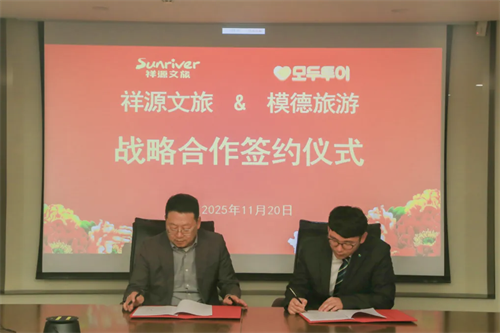 11月20日,韩国模德旅游总裁李优渊一行到访祥源文旅,与祥源文旅(600576.SH)总裁方言围绕跨境市场推广、文旅项目开发及业态创新升级等议题进行了深入交流。会谈后,祥源文旅副总裁李杰与李优渊代表双方签署了战略合作协议。此次与韩国第二大出境旅游企业模德旅游的强强联合,标志着双方将携手共同开拓韩国旅游市场,探索文旅产业升级新机遇。
