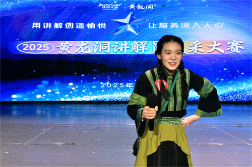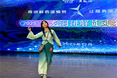 比赛现场,参赛选手们结合各自的岗位实际情况,展现出了让人耳目一新的鲜明特色。来自客户服务岗的讲解员们在展现高度专业水平的同时,也各自展示了多才多艺和个性鲜明的风采;游船驾驶员胡宝国,巧妙的将传说故事、本土山歌及响水河的景点介绍完美的融合在一起,让游客在乘船游览响水河时享受一段妙趣横生的旅途;抖音户外主播王丹,用妙趣横生的形式将黄龙洞生态广场的动物、植物及特色建筑娓娓道来,幽默风趣中显露出浓郁的文化色彩……这种“人人会讲解”的创新模式,打破了传统岗位的限制,让每一名员工都成为一个个“移动服务站”,从而让游客在黄龙洞处处都能领略到不同的精彩。