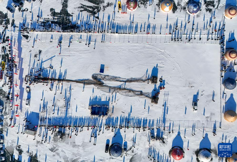 12月27日,游人在冰雪渔猎那达慕现场拍照。