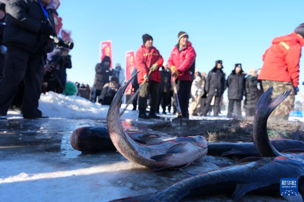 12月27日,黑龙江省大庆市杜尔伯特蒙古族自治县第九届冰雪渔猎那达慕在当地连环湖启幕,人们在现场体验“冰湖腾鱼”的震撼场景,感受传承千年的渔猎文化,冰雪渔猎那达慕同步融入第四届黑龙江“冷水鱼·冬捕季”活动。