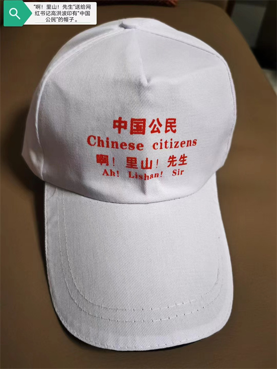 7月13日,“啊!里山!先生”又在他的微信朋友圈作了这样的完善和补充:3.到重庆市荣昌区,如果见到高洪波书记(见图4),就送他一顶印有“中国公民”字样的帽子(见图5),希望他下一步,退休不退色,以一个中国公民的身份,继续为人民服务,中国民间啊!里山!先生在民族振兴的旅行线路上等他。