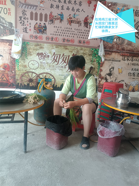 半年前的冬季,进行云贵川鸡鸣三省红色文化旅游融合宣传的“啊!里山!先生”一行来此时,徐燕家四层楼房的鸡鸣三省饭店还处在紧张的装修施工中,在鸡鸣三省大桥头四川一边广场外摆流动摊的徐燕接受六大河栏目的采访,那次六大河•特写篇发表了《徐燕:赤水河村“一支花”》。