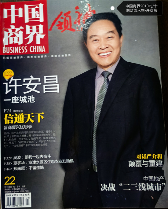后来,从许大哥手机里的资料上看,原来他说的不是重庆的《商界》杂志,而是北京的《中国商界》杂志,而这《中国商界》杂志,就是我以前干了九年的老东家——中国商报社,许大哥做的是《中国商界》杂志2010年9-10期合刊的封面人物。