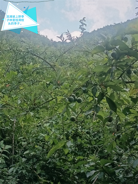 龙滩坡确实是一块风水宝地,抑制不住自己的六大河栏目,又在高君儒老师的带领下,开车爬到龙滩坡上公路的尽头:林荫道下,空气出奇的清新,眼前是满山满坡的野李子林,即将成熟的野李子,密密麻麻地挂在枝头,看上去个头虽不大,但却实在是有些让人流连忘返。