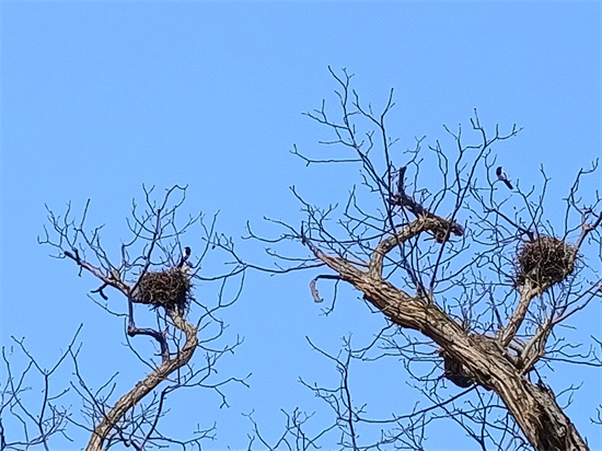 一般来说,一棵树上出现一个喜鹊窝,这样的树相对较多,但乌龙谷这棵古核桃树,这些年来一直都至少有两个喜鹊窝,多的时候,甚至出现三个,这足可见这棵古核桃树的巨大。
