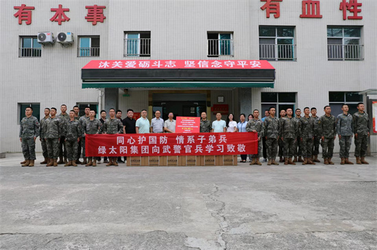 9月18日,贵州省爱国拥军促进会、贵州省红十字基金会和贵州绿太阳大健康产业集团一行来到贵州武警总队机动支队和武警黔南支队,分别给这两个支队官兵送去了贵州绿太阳大健康产业集团捐赠的苗药日晒防治膏,向武警官兵学习致敬。