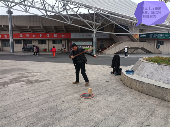 打陀螺居然是用电钻来启动?这真让六大河栏目记者长了见识,目睹此情此景,六大河栏目记者真是佩服他们这帮老人锻炼的良苦用心了。