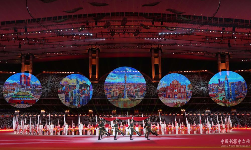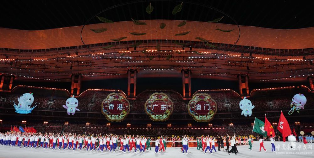 广东省体育代表团、香港特别行政区体育代表团和澳门特别行政区体育代表团在入场仪式上共同入场。新华社记者江汉摄