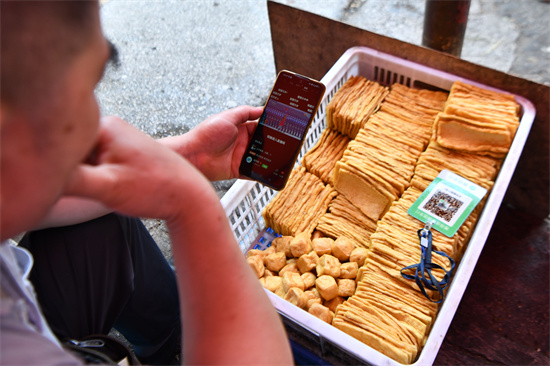 “看手机,不卖豆腐啦!”9月3日,凯里市金玉农贸市场门口,一位市民半开玩笑地对着远口豆腐摊摊主谭海平叫道。
