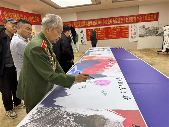活动承办方北京百年风云文化艺术中心军民融合红色书画家委员会、北京鑫利德成科技有限公司、北京通航军融科技管理有限公司、北京银聚志业国际科技发展中心(有限合伙)、军民融合红色书画家委员会中部(战区)军民融合红色书画家委员会、军民融合红色书画家委员会湖南军民融合红色书画家委员会的领导和书画家们等在北京密云区金寓大厦八楼共同见证书画展开幕时光,并成立海峡两岸中