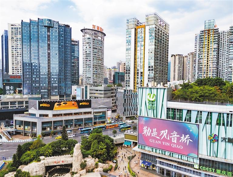 10月11日拍摄的重庆市江北区观音桥商圈。该商圈2023年入选第三批“国家级旅游休闲街区”,单日最高人流量达105万人次。