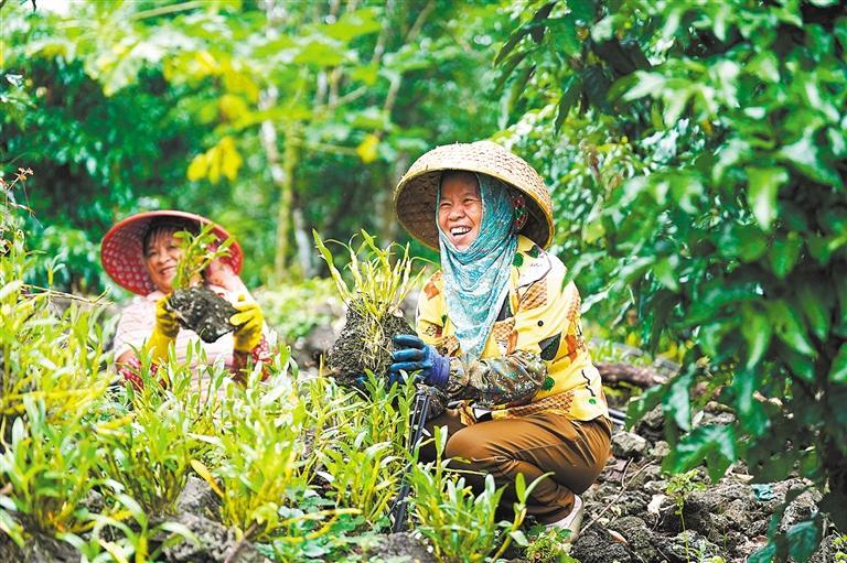 十一月十日,海南省海口市石山镇施茶村火山石斛园,村民在管护石斛。近年来,该村依托火山资源,打造火山石斛科研、种植、深加工的全产业链条,助力乡村全面振兴。