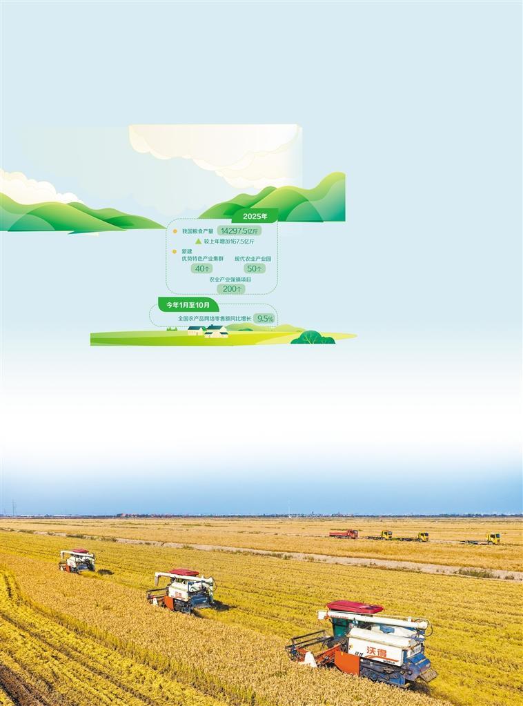 11月12日,收割机在江苏省连云港市大新农场收割耐盐碱水稻。2025年,全国粮食生产克服春季干旱、高温伏旱、秋季连阴雨等灾害影响,产量稳定在1.4万亿斤以上。王健民摄(中经视觉)