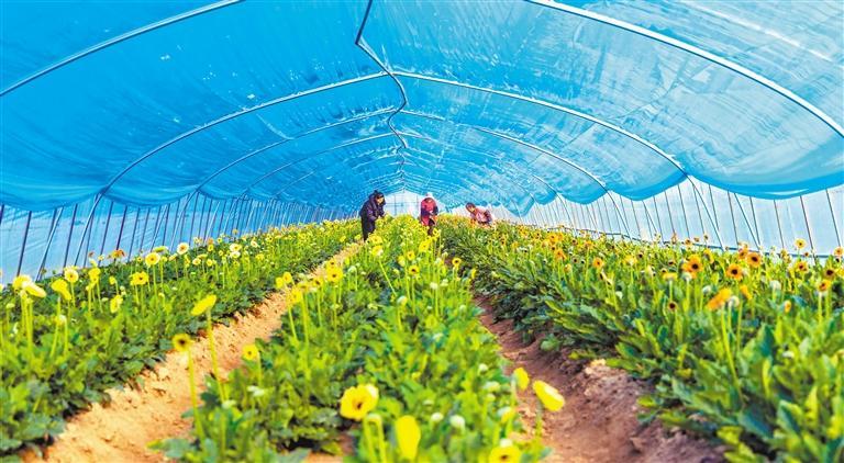 新年将至,鲜花迎来热销。12月25日,江苏宿迁市泗洪县界集镇曹庙社区一鲜花种植基地,花农忙着采收非洲菊。李 佳摄(中经视觉)