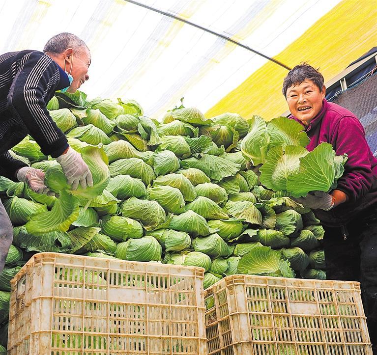 12月17日,安徽亳州市蒙城县,菜农在搬运刚采收的甘蓝。 胡卫国摄(中经视觉)