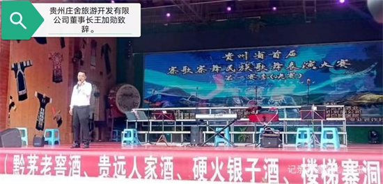 贵州首届村寨歌舞大赛在主办方楼梯寨组委会的精心筹备下有序进行。贵州庄舍旅游开发有限公司董事长王加勋上台致辞,他的话语中充满了对民族文化的热爱和对本次大赛的殷切期望。而且,王董事长更是慷慨解囊,所有的奖金,无论是现金还是实物(鸡、羊、猪),都由他无条件提供,这份支持为大赛增添了更多的光彩。