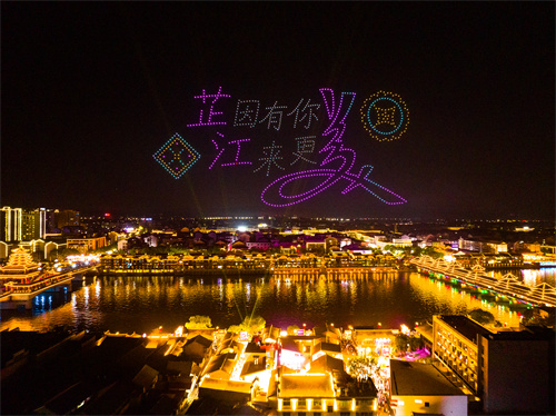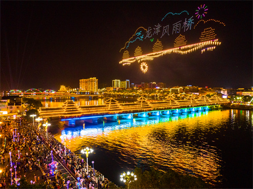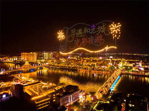 第六届中国芷江国际和平文化节开幕式民族文艺演出以芷江和平地标太和塔为核心载体,借助前沿光影科技、无人机秀等打造出虚实结合的立体演出空间,让观众沉浸式感受“和平文化”在芷江这片土地上传承、生长的脉络。