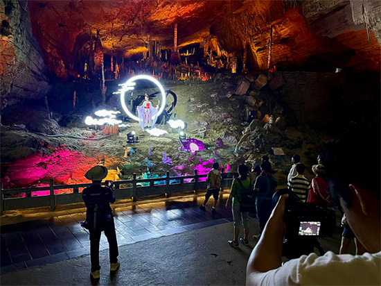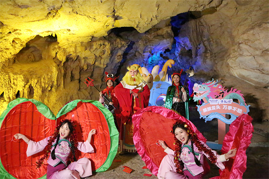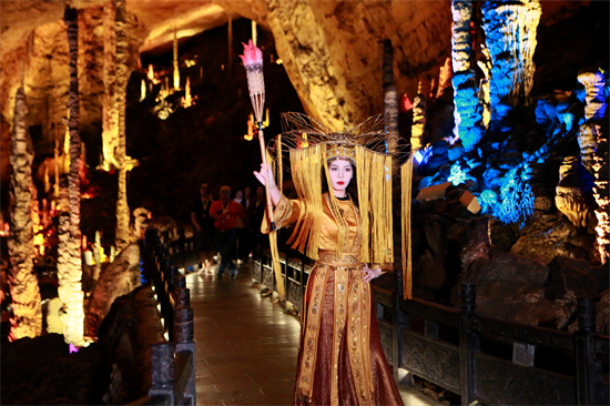 “龙王寻踪”主题NPC互动游戏创新引入了从游客中海选“龙王”及一众“虾兵蟹将”的互动机制,游客们可以通过完成各种挑战、知识问答等任务的方式赢取出演机会,参加到“龙王巡游”的队伍之中,在洞外生态广场和洞内龙宫大厅等精华景点留下自己的精彩形象,沉浸式感受当地的自然景观与民俗文化。