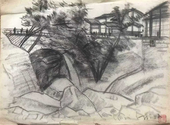 桐梓高桥镇的晨雾里,总飘着河水与草木的清润。本土著名画家曾庆明老师的书房便浸在这样的气息中,在他的画室里,有一幅画摊展了半个多世纪——1972年的老桥在纸面立得坚实,青灰桥墩扎进淙淙河水,溅起细碎浪痕;桥面石板被行人磨得发亮,挑菜筐的妇人侧身避让赶牛老汉;桥对岸瓦房错落,炊烟与树影缠在河面,投下朦胧暖光。画纸边缘微微泛黄,却像块浸在时光里的琥珀,封着高桥的烟火气。