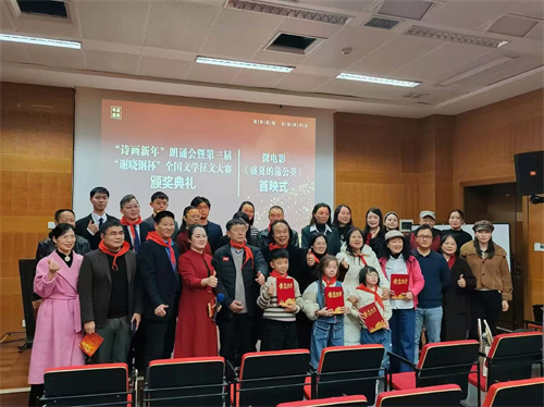 中国新报讯(通讯员 向往)新年曦光漫过长沙市图书馆窗棂,激昂朗诵声划破冬日静谧。12月27日上午,“诗画新年”朗诵会暨第三届“谢晓钢杯”征文颁奖·微电影《盛夏的蒲公英》首映式温情启幕。活动由潇湘悦读文化研究会(湖南读书会)策划,以朗诵、颁奖、首映三线联动,让文字温度、艺术力量与新年希望在星城交融。中国好人谢晓钢、湖南省国防教育研究院院长李先德、湖南第一师范学院党委书记苏美华等嘉宾,与百余位作者、读者及媒体人齐聚赴约。