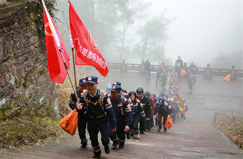 2026年第一天,休宁县老兵志愿者应急救援队组织40余名队员和志愿者踏上齐云山“九里十三亭”的霞客古道,开展“新年楼上楼,建设更上一层楼——徒步拉练暨净山公益行”活动,锤炼队员实战技能,磨炼坚强意志。