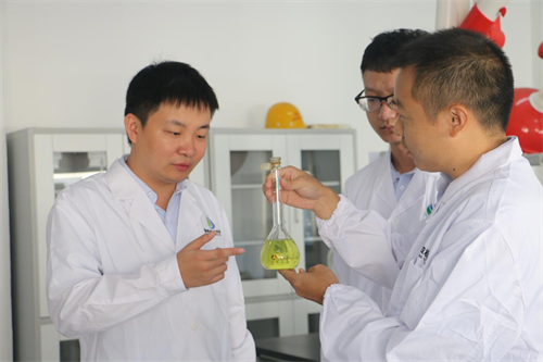 图为建衡实业科研人员探讨水处理剂的研究与应用。高力 摄