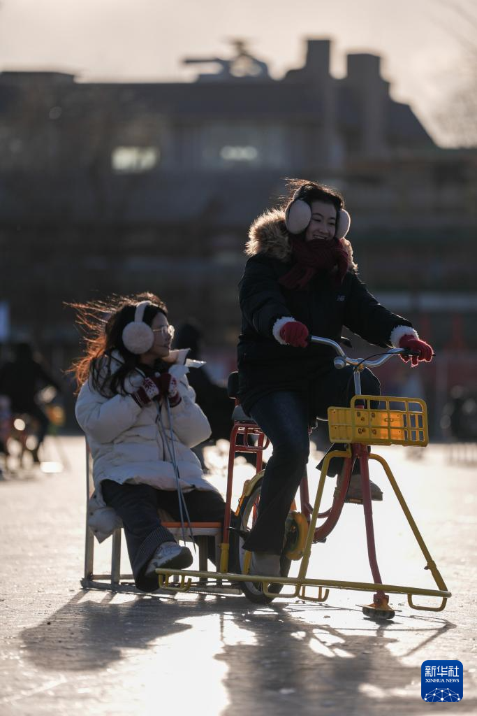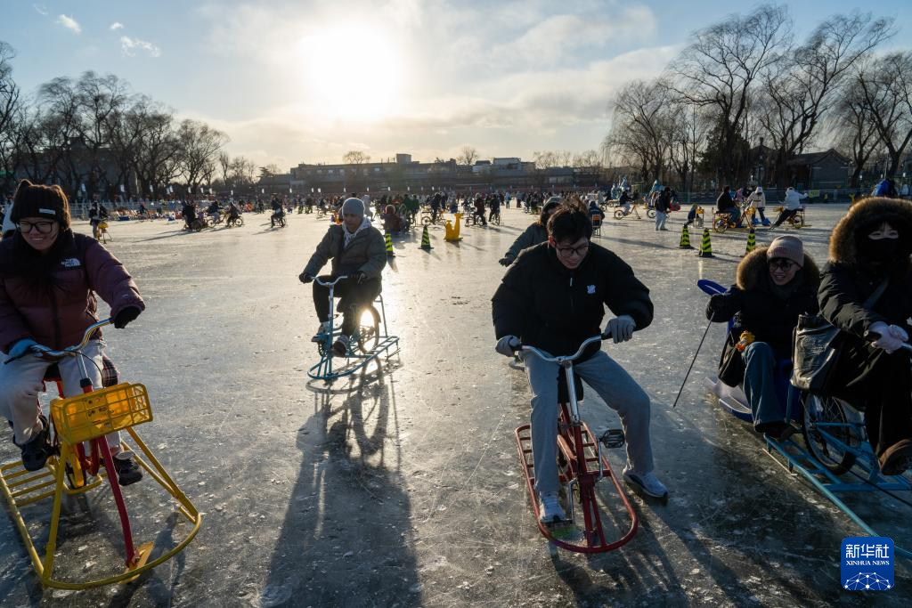 1月10日,游客在什刹海前海冰场上游玩。