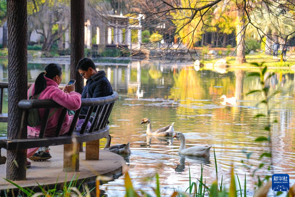 1月10日,云南昆明天气晴好,市民游客在冬日的暖阳中漫步于昆明植物园,领略自然美景,尽享惬意悠闲的周末时光。