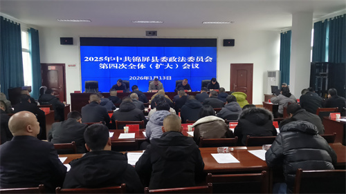 2026年1月13日,中共锦屏县委政法委员会2025年第四次全体(扩大)会议在县委政法委四楼会议室召开。会议传达学习习近平总书记关于全面依法治国重要指示精神、中共中央政治局分析研究2026年经济工作和审议《中国共产党领导全面依法治国工作条例》会议精神、中共中央政治局研究部署党风廉政建设和反腐败工作会议精神、中央政法委书记陈文清关于《习近平法治思想是全面依法治国的根本遵循和行动指南》,全面总结分析2025年全县政法工作成效与不足,审议相关工作事项,系统部署2026年政法重点任务。县委常委、县委政法委书记石家德主持会议并讲话,县人民政府副县长、县公安局党委书记、局长李作维,县人民法院院长龙世德,县人民检察院检察长朱启秀出席会议。