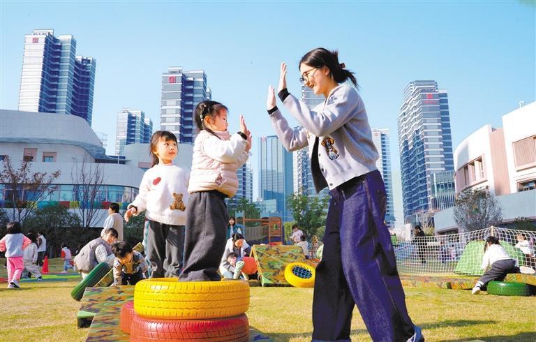 2025年12月18日,中国福利会托儿所普陀园,小朋友在户外玩耍。 徐 炜摄(中经视觉)
