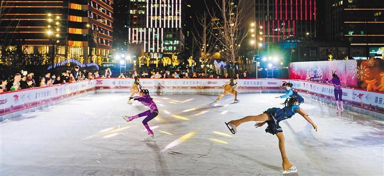 2025年12月19日,市民在上海真如环宇城MAX户外滑冰场观看花滑表演。 普 宣摄(中经视觉)