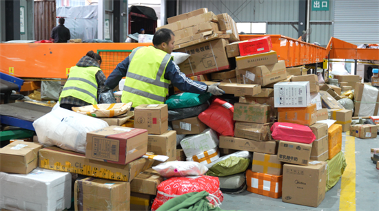 走进台江县寄递物流共配中心,机器的轰鸣声此起彼伏,自动化分拣线不停运转,一件件包裹在传送带上快速完成识别、扫码、分流,精准驶向对应区域。工作人员穿梭在货架之间,扫码、拣选、打包、装车,动作娴熟、配合默契,每一个环节都井然有序,忙碌的身影勾勒出浓浓的年味与暖意。