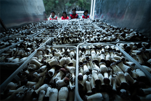 而在贵州发鑫农业有限公司的标准化种植基地,更是一派热火朝天的生产景象。“今年我们在蓝田镇带动各村集体种植1500亩羊肚菌,目前已收获鲜菌32吨,线上线下销售额预计突破2000万元。”公司相关负责人周赛云介绍,从采摘、分拣到加工、直播,已带动周边群众就近就业4000人次。