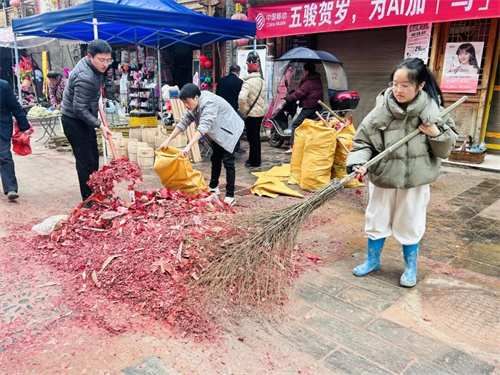 近日,台江县施洞镇组织党员干部分区域包干,对节日期间燃放的鞭炮碎屑展开集中清理——这不仅是恢复古镇容颜的务实之举,更是一场“党建+治理”的生动实践。